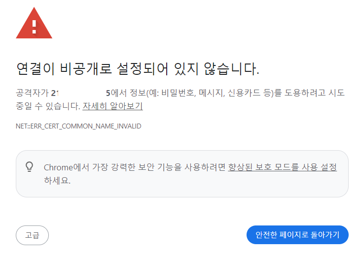 (모든 상황에서 위험한건 아니지만, 이렇게 인증 경고창이 뜬다는 것은 신뢰할 수 없다는 의미이기도 합니다. 나중에 다른 글에서 다시 한번 자세히 다뤄볼께요.)