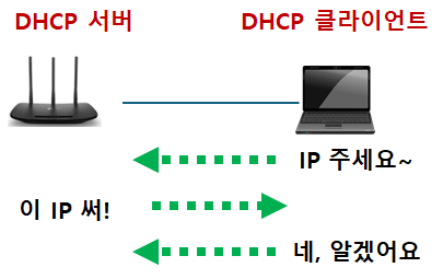 : 위에서 공유기가 단말기 들에게 사설 IP 주소를 할당해준다고 설명드렸는데요. 이처럼 단말이 공유기에 연결되었을 때, 자동으로 IP 주소를 할당해주는 역할을 하는 것이 바로 "DHCP 서버" 기능입니다.