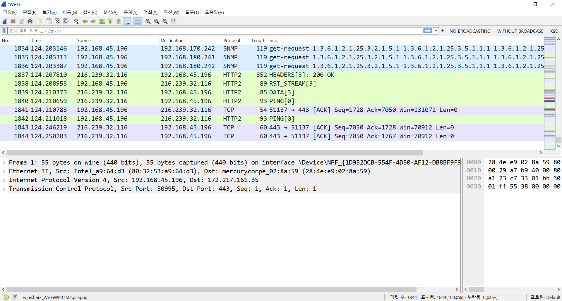 패킷은 잘 수집되는 것을 봤으니, 그럼 내가 사이트에 접속할 때 어떤 패킷들이 오가는지 한번 간단히 살펴볼께요.