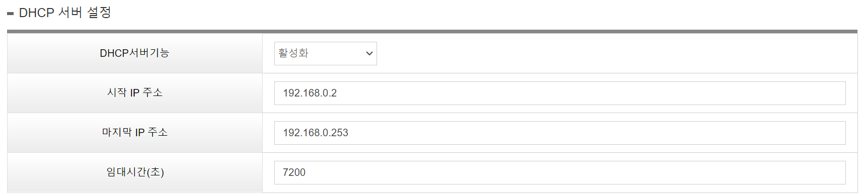 이제 DHCP 서버의 IP 주소도 확인되고, DHCP 서버 설정에서도 보았던 Lease Time (할당 시간)도 보이네요 ^^