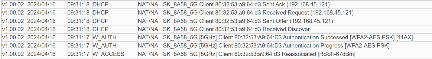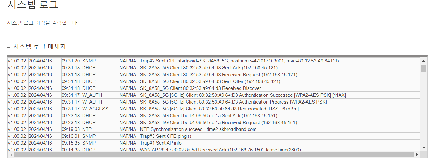 SKB 공유기가 좀 더 자세하게 기록을 남기고 있는 것을 확인할 수 있습니다.